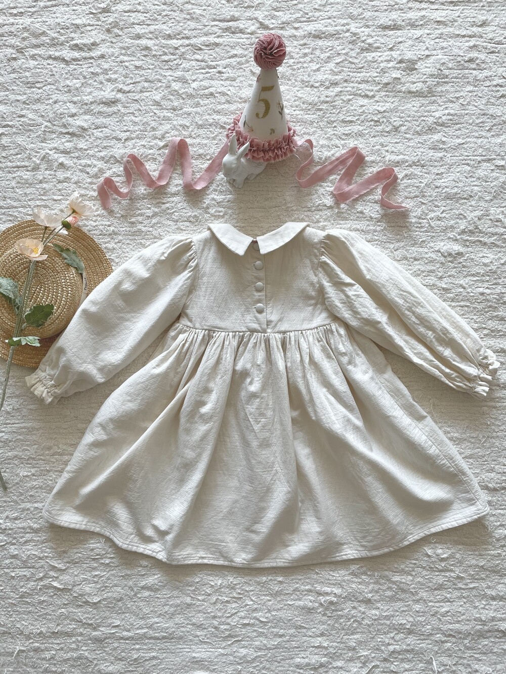 / 4-2 바닐라 크림, 긴팔 프릴 소매, 카라로 변경