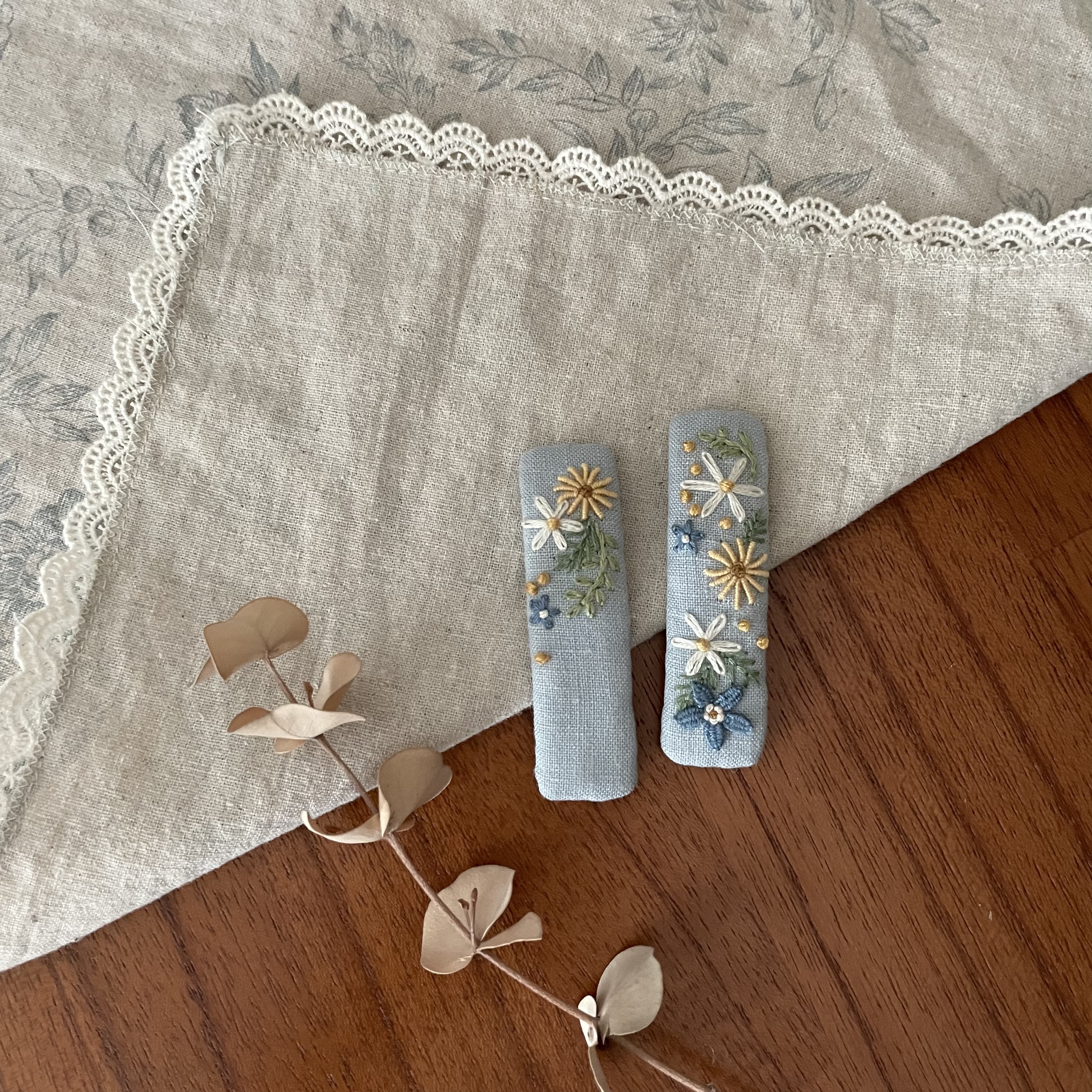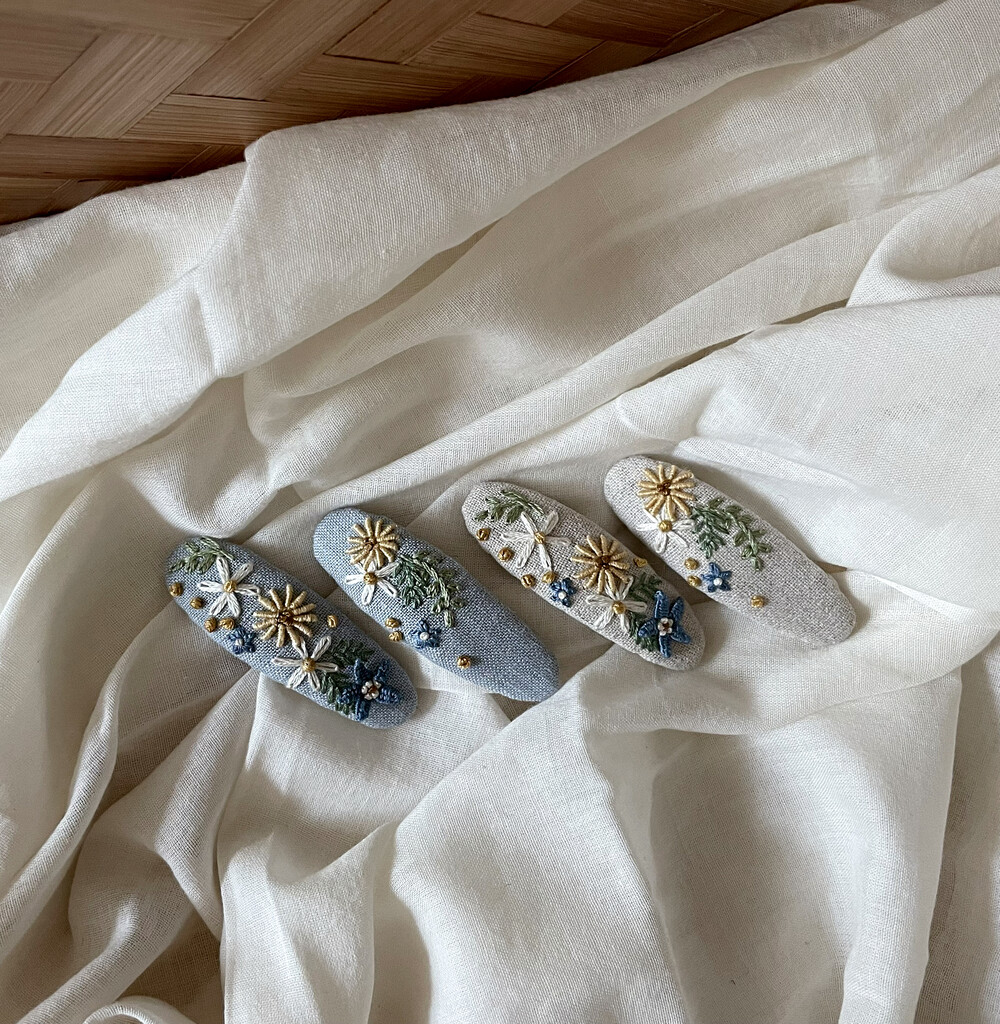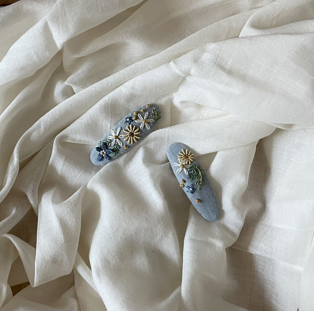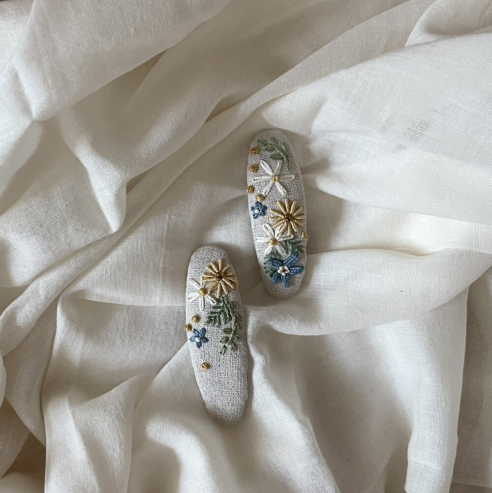 100% 바느질로만 제작한 헤어핀입니다